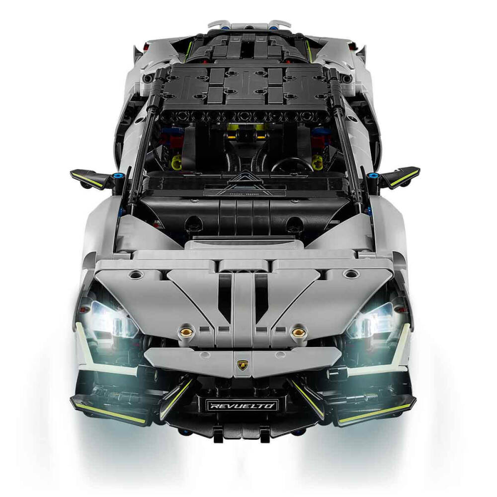 LEGO® Technic Lamborghini Revuelto (42214) seti, Lamborghini’nin efsanevi süper spor otomobilinin göz alıcı detaylarını LEGO formuna taşıyor. Gerçekçi tasarımı, güçlü hatları ve etkileyici renk kombinasyonuyla Revuelto modeli, hız tutkunlarının koleksiyonlarında özel bir yer edinecek.